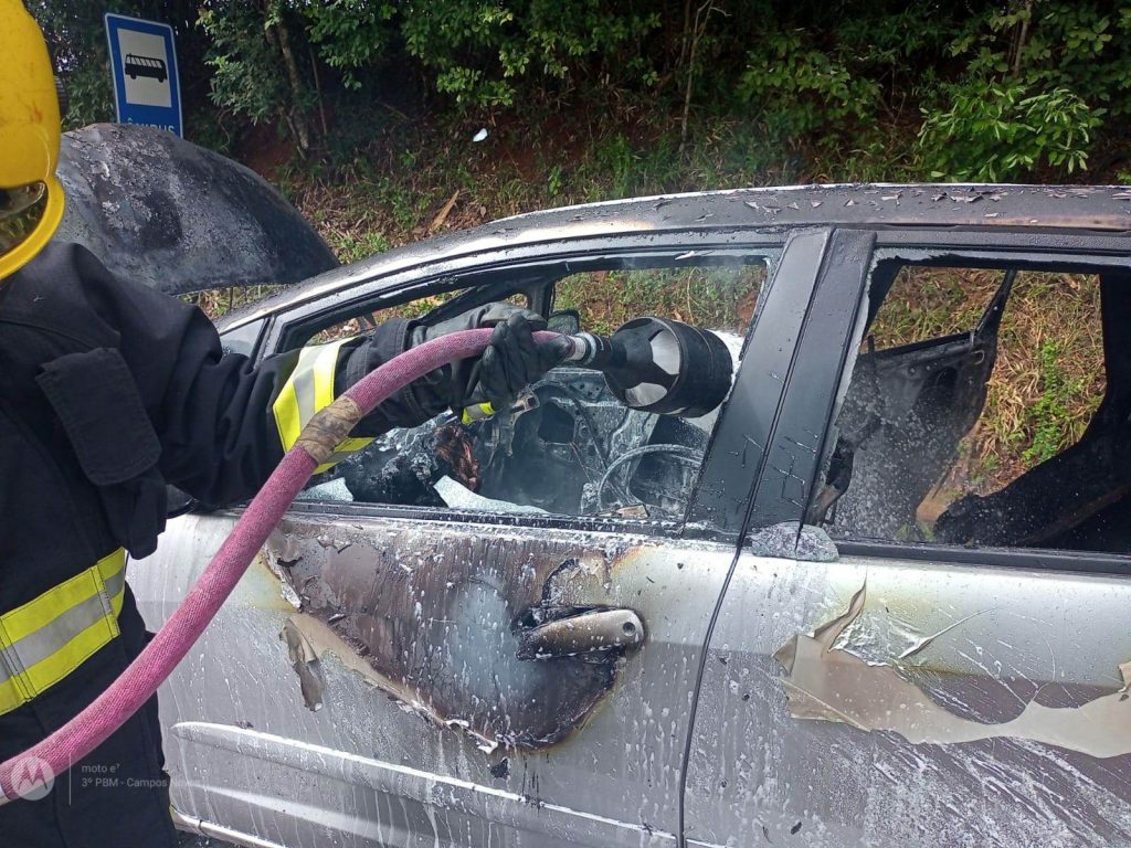 Carro pega fogo no interior de Campos Novos