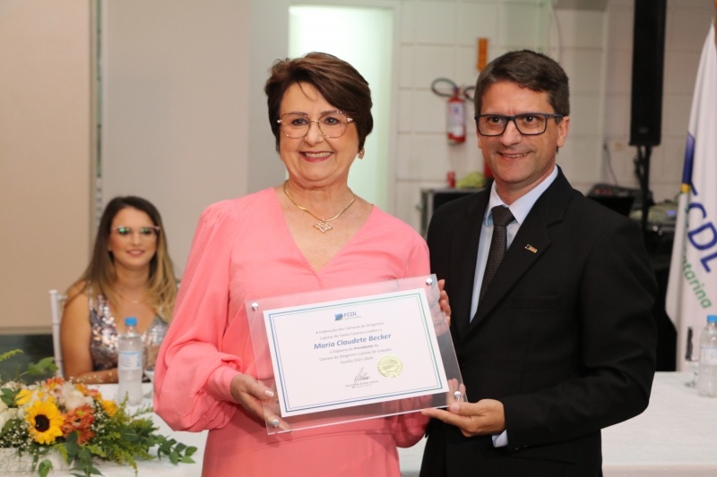 Foi realizada na noite deste sábado (04) em Joaçaba, a solenidade de posse da nova diretoria da Câmara de Dirigentes Lojistas (CDL) para o biênio 2023/2024. O evento aconteceu nas dependências do Clube 10 de Maio e foi prestigiado por inúmeras autoridades, associados e imprensa. Entre as autoridades presentes, o presidente da Federação Catarinense de Dirigentes Lojistas (FCDL), Onildo Dalbosco Júnior, fez questão de destacar em seu discurso que a CDL/Joaçaba é uma das mais antigas de Santa Catarina, fundada em 1967, e que foi importante no processo de criação da FCDL.