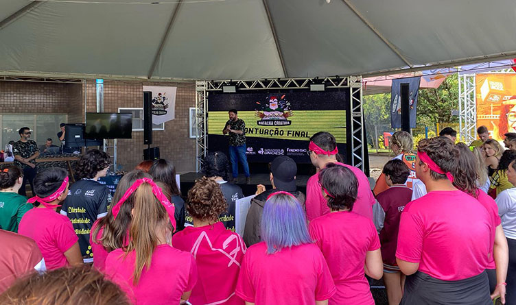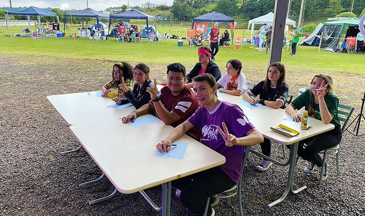 O curso de Publicidade e Propaganda da Unoesc Joaçaba realizou, na sexta-feira (31) e no sábado (1º), no Complexo Esportivo do campus 2, a 8ª edição do “Acampar: Batalha Criativa”. O evento reuniu oito equipes, formadas por estudantes de diversas fases, que se enfrentaram em provas que envolveram trabalho conjunto e conhecimentos específicos e exigiram interação, criatividade e raciocínio rápido.