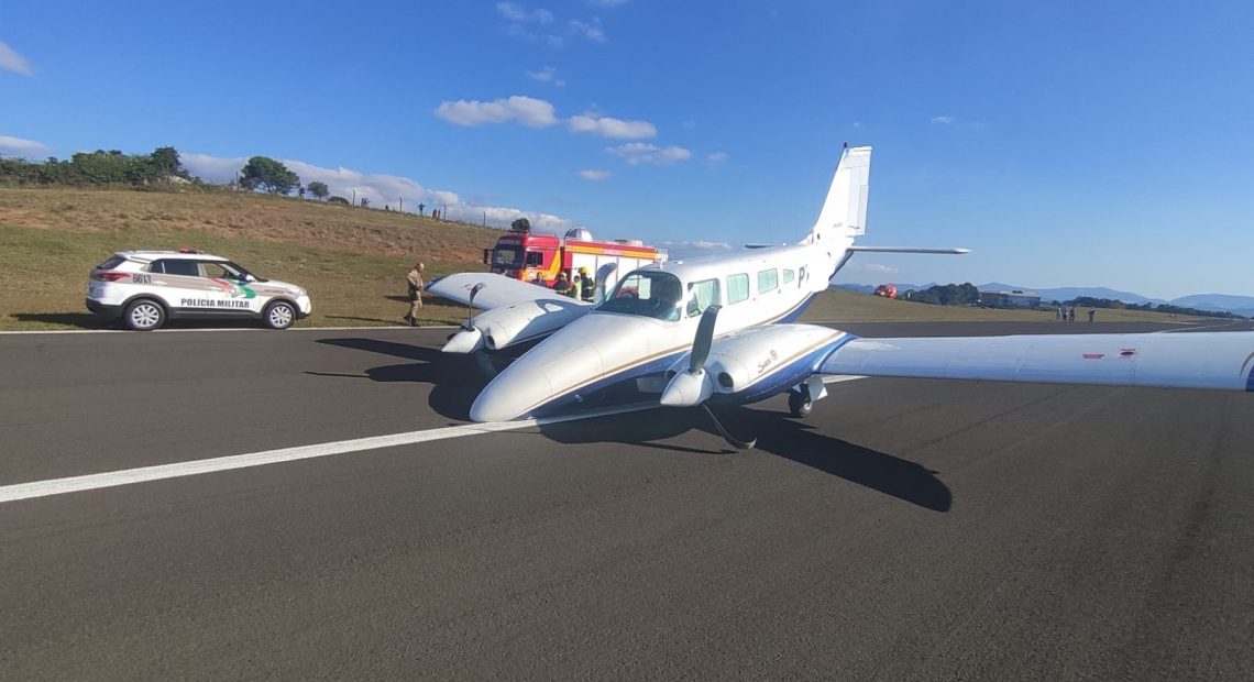 Avião faz pouso forçado no aeroporto de Videira