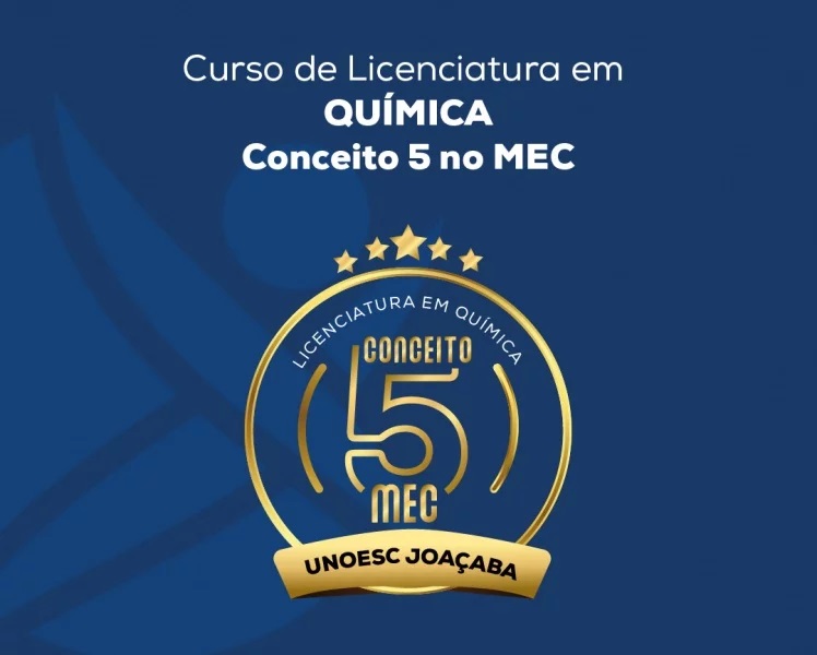 O curso de Licenciatura em Química da Unoesc Joaçaba recebeu conceito 5, nota máxima, na avaliação do Ministério da Educação (MEC). O conceito foi obtido após a avaliação realizada de forma on-line entre os dias 31 de maio e 2 de junho. Para o MEC, cursos com conceito 5 são de excelência, vistos como referência pelos demais.