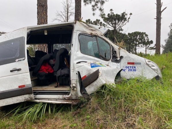 Uma van da Secretaria de Saúde de Maravilha saiu da pista e capotou nas margens da BR-282, em Vargem Bonita, por volta das 9h20 da manhã deste domingo, dia 11.