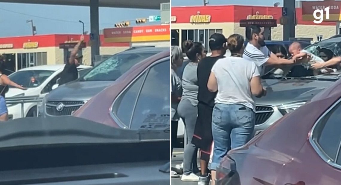 Pai quebra para-brisa de carro trancado para salvar criança do calor no Texas