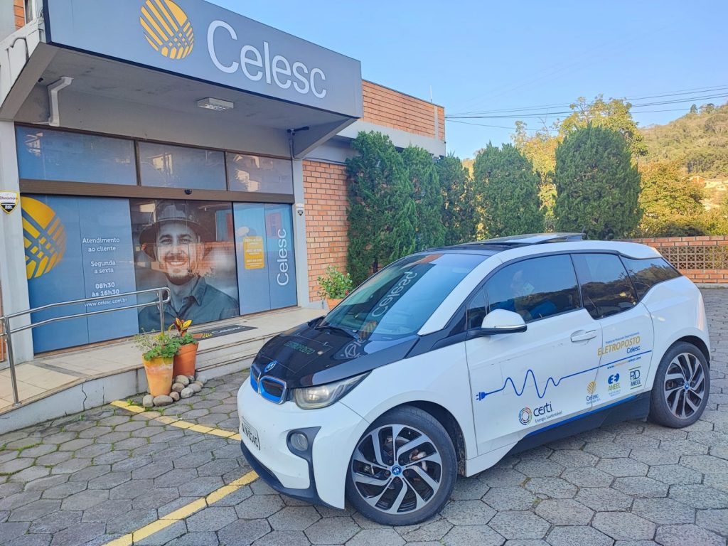 Já está em Joaçaba a BMW I3, um dos carros elétricos da Celesc. O veículo estará exposto no estande da Agência Regional da Celesc de Joaçaba (ARJOA) que participa da Feira Catarinense de Comércio e Inovação (Fecaci 2023), entre os dias 25 a 27 de agosto, no Centro de Promoções de Joaçaba (CPJ).