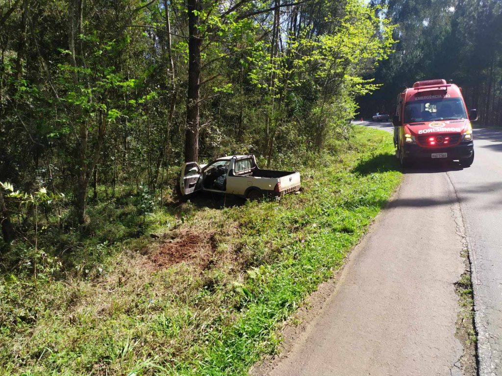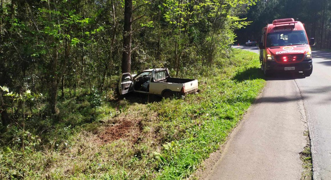 Idoso morre após picape sair de pista e colidir em árvore na SC-150