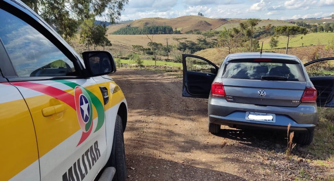 Os policiais então fizeram o retorno com o propósito de parar o veículo, que acabou entrando em uma estrada local, momento em que foi abordado.