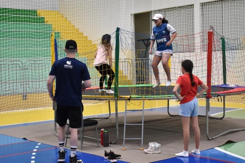 O Unoesc Abraça acontece a partir das 14h, no ginásio, com ações esportivas, recreativas, culturais e de lazer às famílias. Serão disponibilizados brinquedos, como cama elástica e piscina de bolinhas, além de materiais esportivos para a prática de atividades.