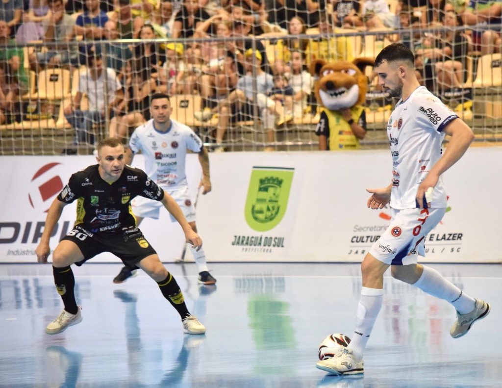 No jogo de volta da semifinal da Série Ouro do Campeonato Catarinense, a equipe do Joaçaba enfrentou o Jaraguá neste domingo (26) na Arena, em Jaraguá do Sul. Infelizmente, o adversário levou a melhor no tempo normal, vencendo por 5 a 2. A batalha se estendeu para a prorrogação, onde o placar terminou em 1 a 1.
