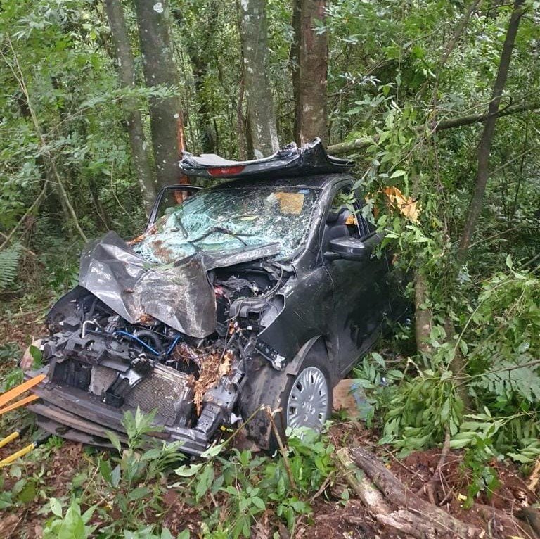 Conforme o Corpo de Bombeiros Voluntários de Treze Tílias, apenas a condutora estava dentro do veículo, que foi estabilizado para abertura e resgate da vítima. O carro ficou completamente danificado.