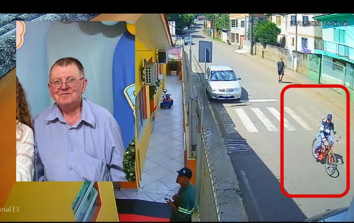 Ernesto, de 77 anos, foi visto pela última vez próximo a UPA em Herval d’Oeste, próximo a uma creche, por uma câmera de segurança. Ele saiu de casa por volta das 14h no bairro Flor da Serra, utilizando sua bicicleta, e desde então não há mais notícias sobre seu paradeiro.