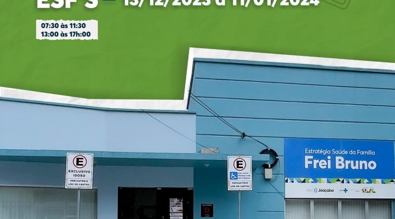 A Secretaria de Saúde de Joaçaba informa que até o dia 11 de janeiro serão concedidas férias aos servidores que possuem férias vencidas. A medida visa reduzir a quantidade de férias pendentes e as saídas no decorrer do ano. Sendo assim, as unidades de saúde, incluindo a Estratégia Saúde da Família e Unidades Básicas de Saúde, funcionarão das 07h30 às 11h30 e das 13h às 17h da seguinte forma: