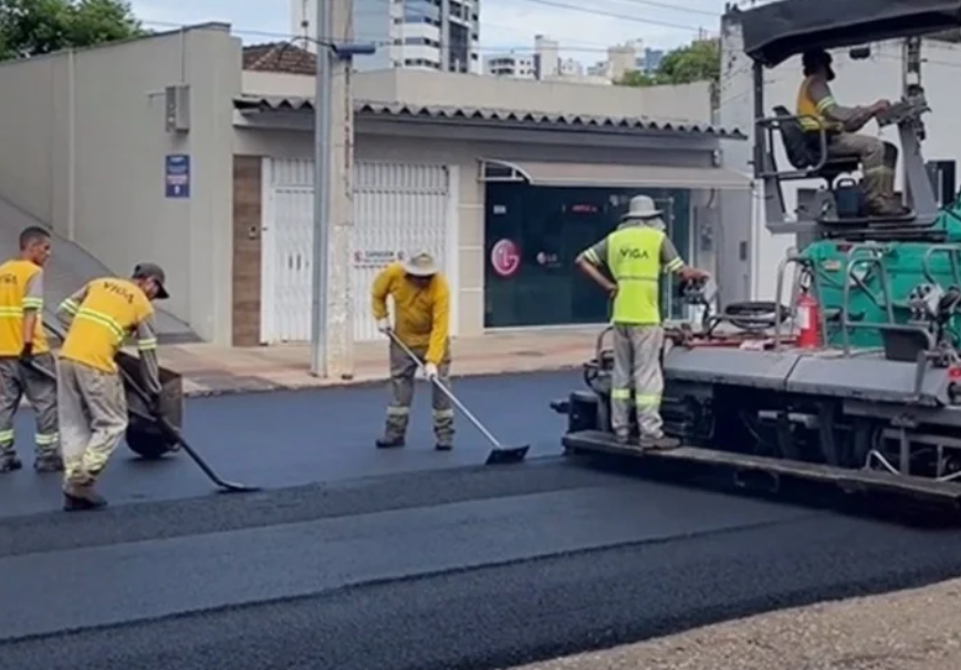 Nova capa asfáltica: Obras na rua Duque de Caxias em Joaçaba