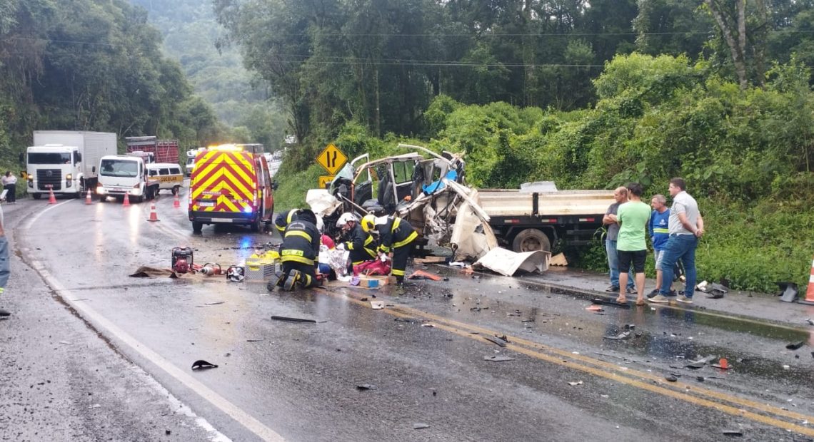 A Polícia Rodoviária Federal de Concórdia esteve realizando os levantamentos que vão determinar as causas do acidente. O trânsito ficou comprometido no local durante o atendimento das equipes de resgate.