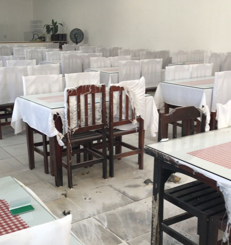 O fogo atingiu mesas, queimou toalhas e chegou a danificar o teto. Rapidamente o proprietário, com a ajuda de um funcionário conseguiram cessar as labaredas com auxílio de extintores. Um Policial Civil que estava no estabelecimento saiu na captura do criminoso e, com o auxílio da Polícia Militar, obtiveram êxito na apreensão do mesmo.