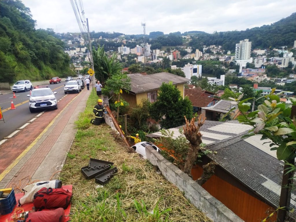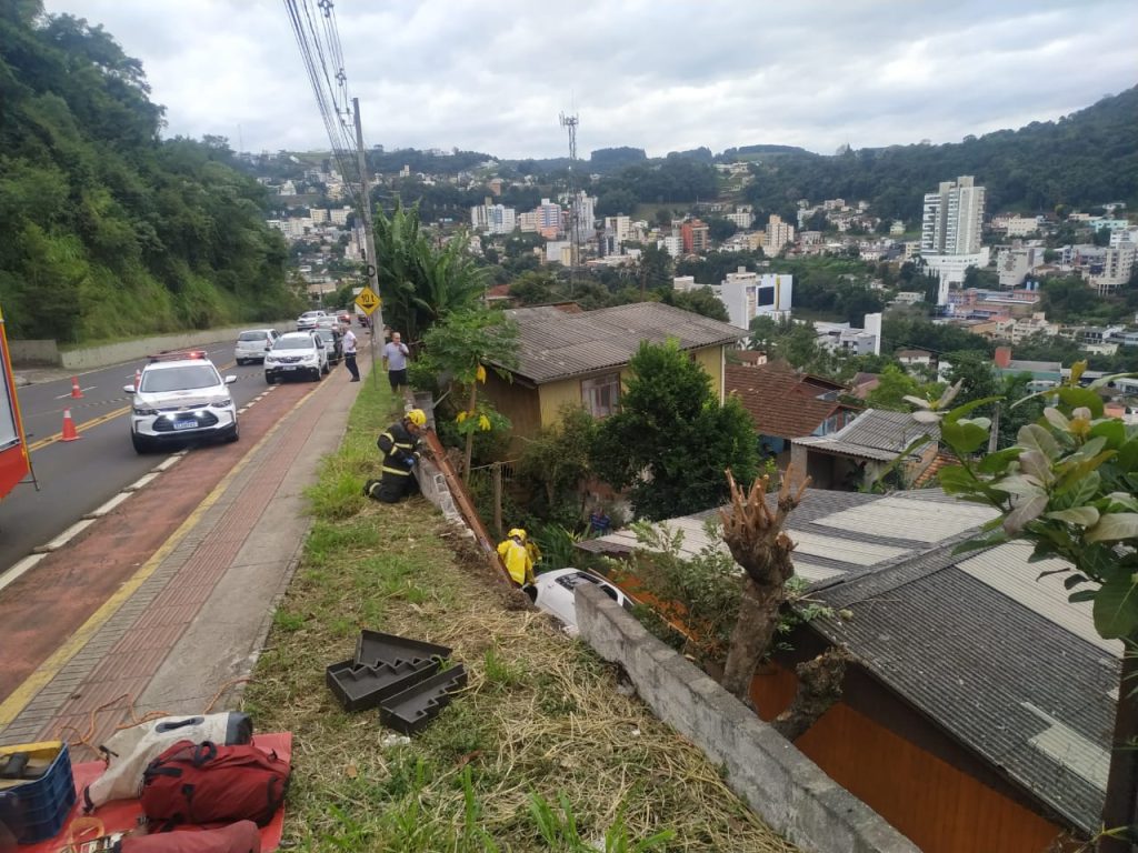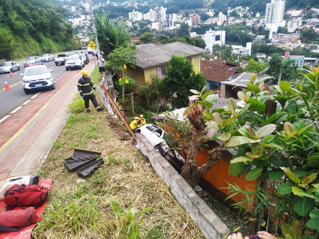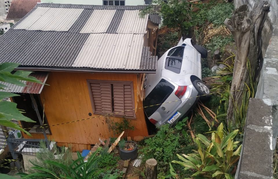 Uma colisão entre dois veículos na manhã desta segunda-feira (15) em Joaçaba por pouco não resultou em uma tragédia maior, quando um VW/Golf perdeu o controle após o impacto e quase invadiu uma residência na encosta do acesso Adolfo Ziguélli. Os bombeiros foram chamados para socorrer o motorista, que foi levado ao hospital com ferimentos. A colisão envolveu VW/Golf e um Fiat/Chronus.