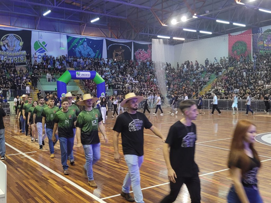 Foi aberta na noite de ontem em Joaçaba mais uma edição da Olimpíada Universitária, a Oliuni. O evento esportivo e cultural reúne mais de 4 mil acadêmicos para a disputa de 13 modalidades esportivas nos naipes masculino e feminino, além das atividades culturais, representando 29 cursos de graduação dos Campus de Joaçaba, Campos Novos e Capinzal, além da participação dos cursos de Ensino a Distância (EAD).