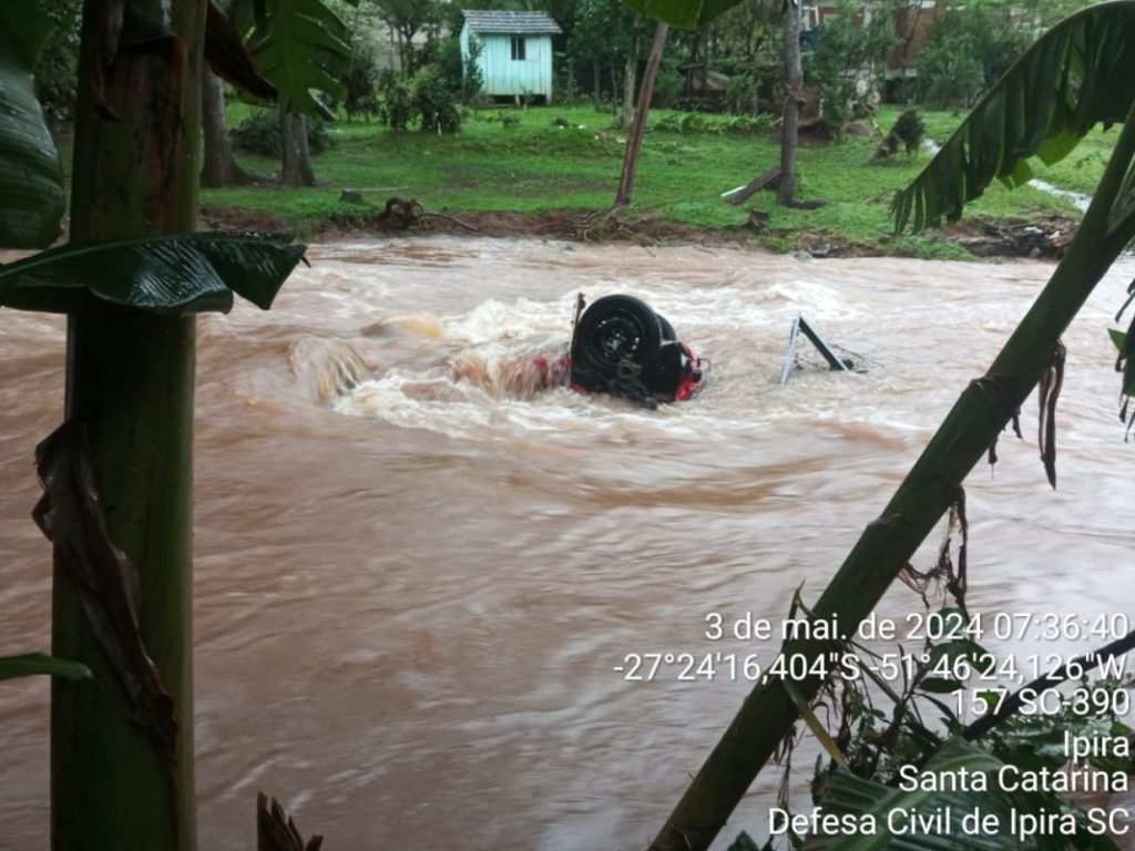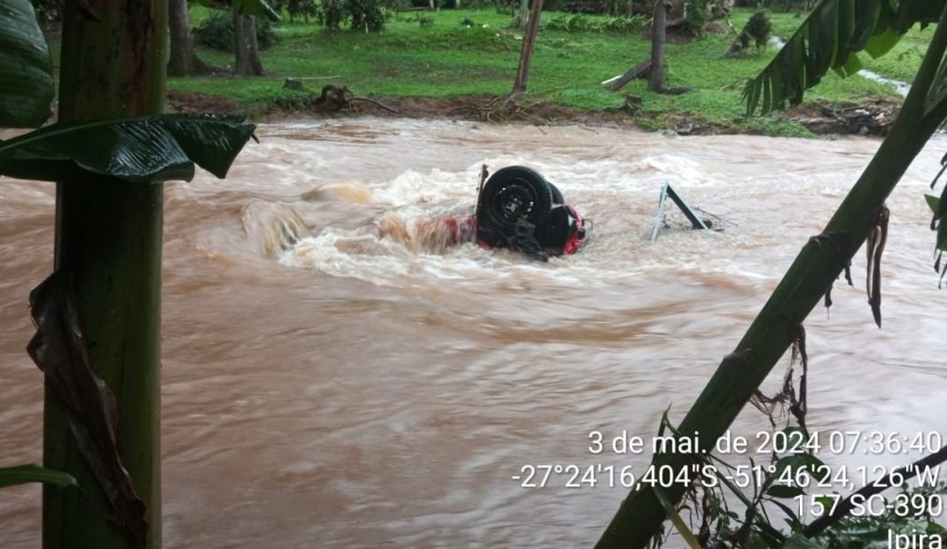 Nesta quinta-feira, dia 2, uma tentativa arriscada de atravessar uma região alagada resultou no desaparecimento de um motorista e seu veículo no interior de Ipira.