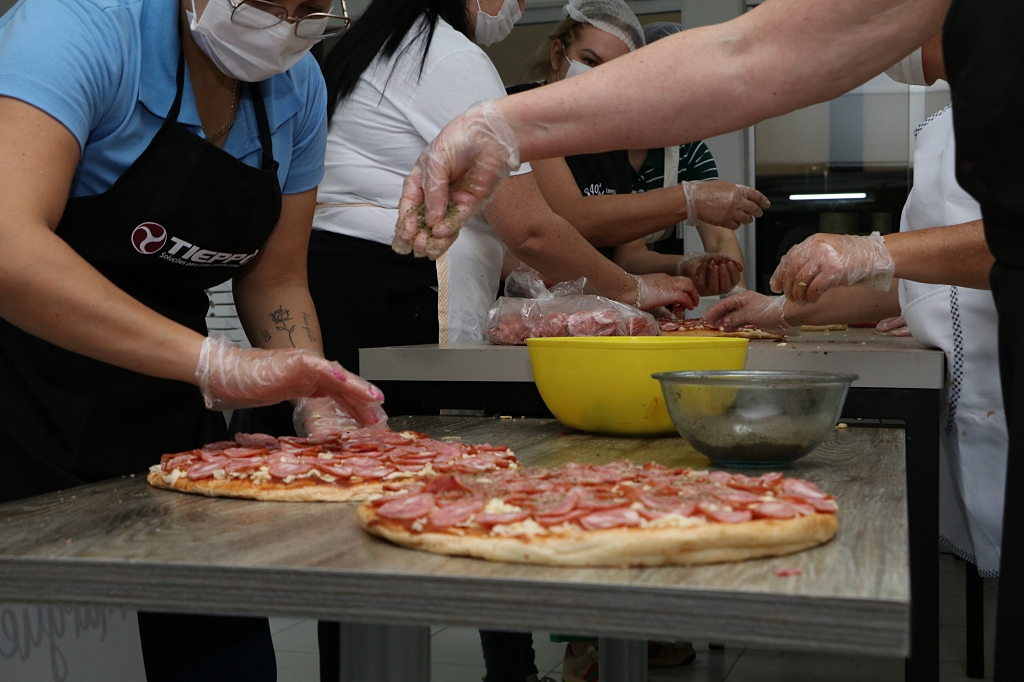Nesta quinta-feira, um grupo de voluntárias da CDL Mulher de Joaçaba se reuniu para dar início a uma ação solidária especial: a produção de 400 pizzas, cujo objetivo é arrecadar recursos para projetos sociais da região. A iniciativa continuará nesta sexta-feira, com as voluntárias divididas em turnos para manter o ritmo intenso da produção.