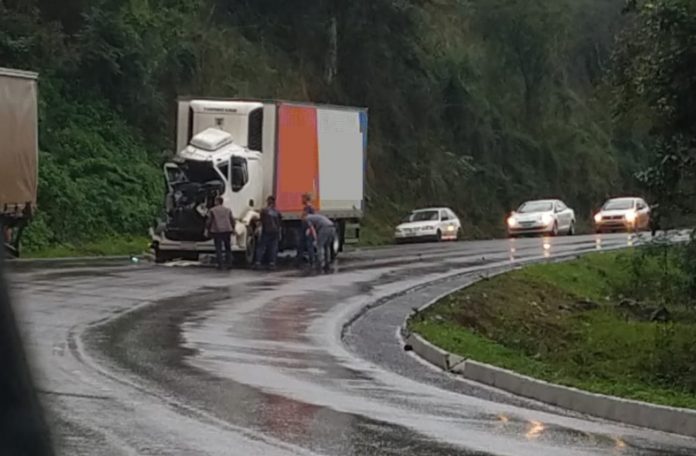 Uma colisão entre carreta e caminhão foi registrado na BR-153 em Caroveira, Irani, por volta das 14h30 desta segunda-feira, dia 24.Também se envolveu um Fiat/Palio.Conforme as informações, foi uma colisão traseira entre carreta e caminhão. Os danos foram de elevada monta no caminhão com placas de Concórdia, sobretudo na parte frontal.Apenas uma pessoa foi conduzida para exames detalhados no Pronto Atendimento de Irani.Próximo a esse local também houve um outro acidente envolvendo uma caminhonete que saiu da pista.