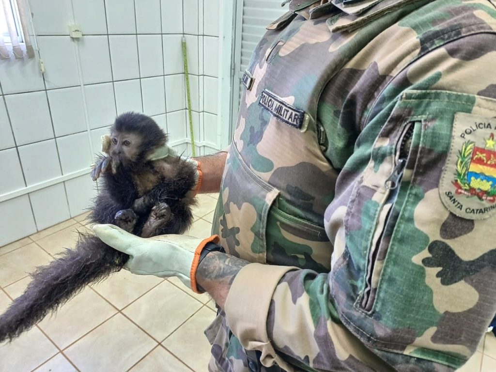 Esta semana a Polícia Militar de Santa Catarina (PMSC), por meio do Comando de Polícia Militar Ambiental (CPMA), realizou um resgate na zona rural da cidade. Moradores da Linha Cedro avistaram um macaco-prego ferido e prontamente entraram em contato com as autoridades para solicitar auxílio ao animal silvestre.