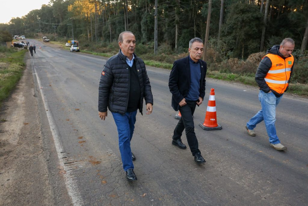 O secretário Ricardo Grando lembrou que o investimento total do Programa Estrada Boa na região é de cerca de R$ 360 milhões. “Estamos fazendo remendo profundo, corrigindo os defeitos e depois disso vamos fazer um micro revestimento. E também estamos fazendo outro segmento, dessa vez de implantação, que vai de Catanduvas até Jaborá”, disse Grando, lembrando que a previsão de término dos trabalhos é de 60 dias.
