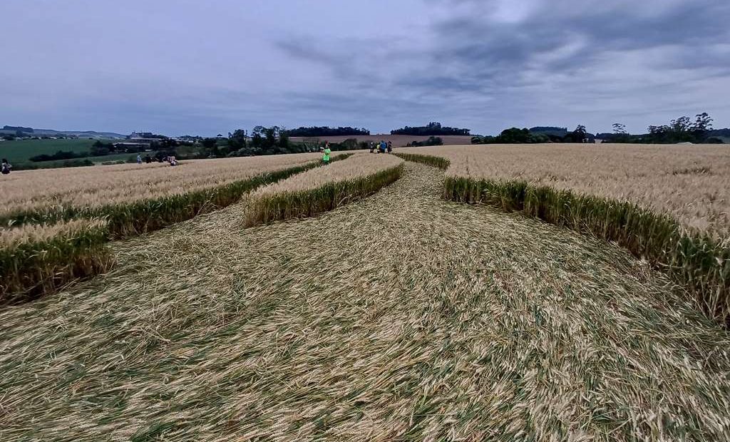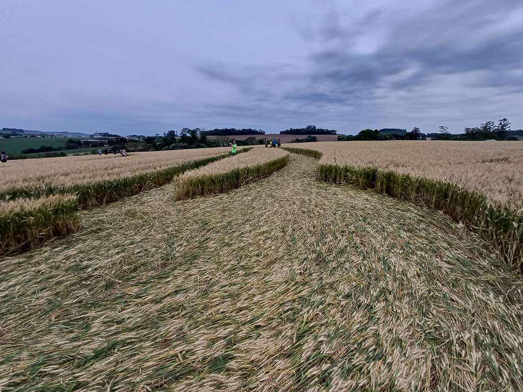 Já em outubro de 2022, agroglifos bastante simétricos foram registrados na plantação de trigo de Sérgio Girotto, de 62 anos, também em Ipuaçu. O morador reside no município desde 1973 e disse não ter visto e nem ouvido nada na época.
