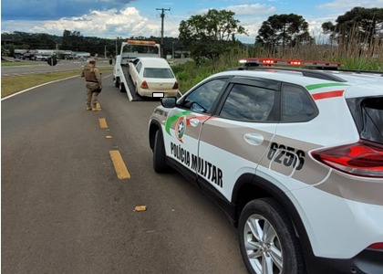 Conforme a Polícia Militar, o veículo Toyota Etios, com placas de Chapecó, foi abordado durante patrulhamento da guarnição, próximo à entrada da cidade. Em consulta ao sistema, a PM constatou que o carro estava com o licenciamento atrasado desde 2019 e havia acumulado mais de 85 autuações. Entre as infrações registradas estavam excesso de velocidade, avanço de sinal vermelho e estacionamento irregular.