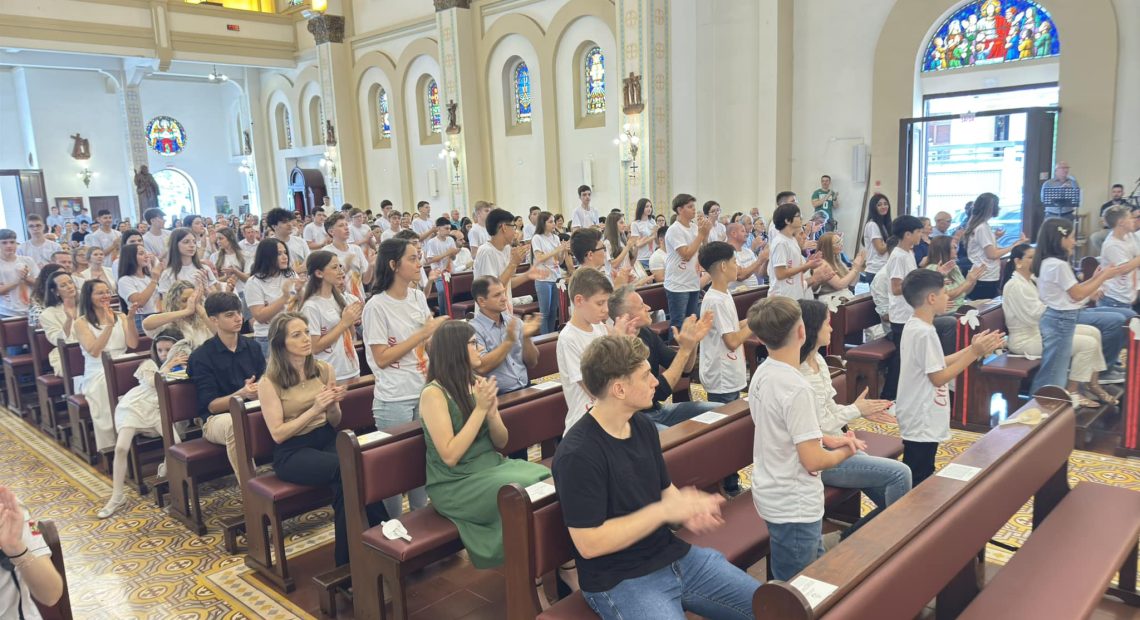 Em tempos de avalanche informativa, onde opiniões são formadas e descartadas com a rapidez de um clique, a Igreja Católica segue firme em sua jornada de renovação, amparada pela fé e pelo desejo de pertencimento. Prova disso é o encerramento do ciclo de crisma em Joaçaba, realizado neste domingo, conduzido pelo Bispo Dom Mário.