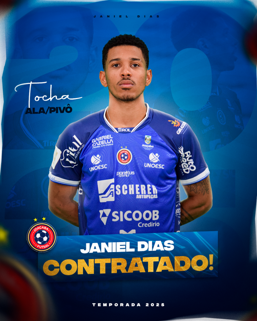 O ala/pivô Janiel Dias da Silva, o Tocha, voltará a defender o Joaçaba Futsal em 2025. Ele integrou a equipe joaçabense na última temporada e se despediu no mês de setembro, quando teve uma passagem pelo time gaúcho Yeesco Futsal.