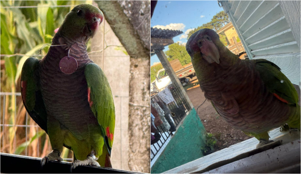 Reintroduzido no Parque Nacional das Araucárias, localizado entre os municípios de Passos Maia e Ponte Serrada, no Oeste de Santa Catarina, o papagaio deixa o habitat para visitar a família quase todos os dias. De acordo com a presidente do Instituto Fauna Brasil, Vanessa Kanaan, a ave de registro “08” viaja por vários municípios da região, assim como outras que também gostam de passear. Segundo a moradora, o papagaio aparece em diferentes horários do dia e tem um objetivo bem específico no local: se apoderar dos alimentos. Como se não bastasse, ele também aproveita para bicar objetos que encontra no caminho, como flores, roupas e até chinelos. A ave também chegou a roer uma janela da casa da família. Além de ser folgado e deixar prejuízo, não é nenhum pouco amigável, segundo a família. “Ele não deixa chegar perto”.