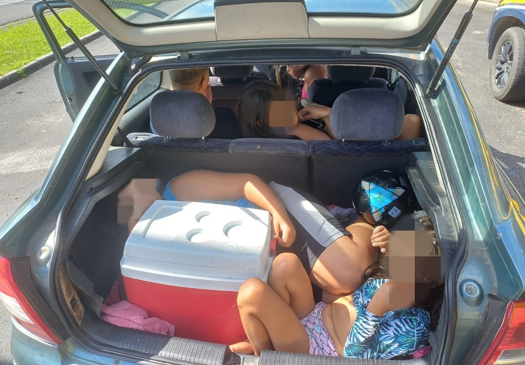 Duas crianças foram flagradas sendo transportadas no porta-malas de um carro neste domingo, dia 5, na BR-101, no município de Paulo Lopes, na Grande Florianópolis. Os menores de 8 e 11 anos dividiam o espaço com sacolas e uma caixa térmica. O veículo foi abordado pela Polícia Rodoviária Federal (PRF).