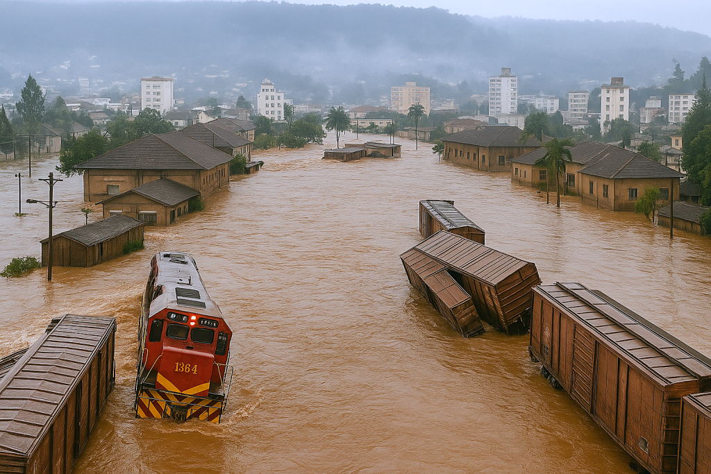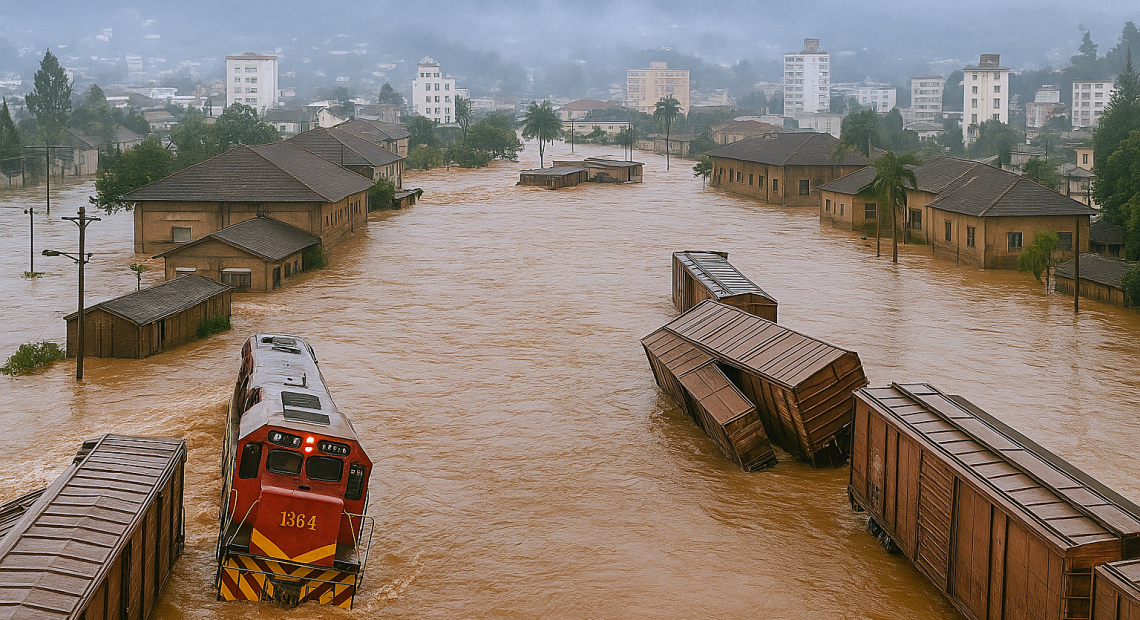 A força da natureza resgatada pela tecnologia: Através da inteligência artificial, recriamos este momento histórico da devastadora enchente do Rio do Peixe em 1983, quando a fúria das águas arrastou vagões de trem em Herval d’Oeste. Uma página dramática da nossa história local que muitos ainda recordam com emoção.