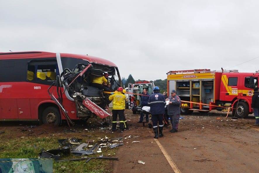 Acidente entre ônibus e caminhão em Campos Novos