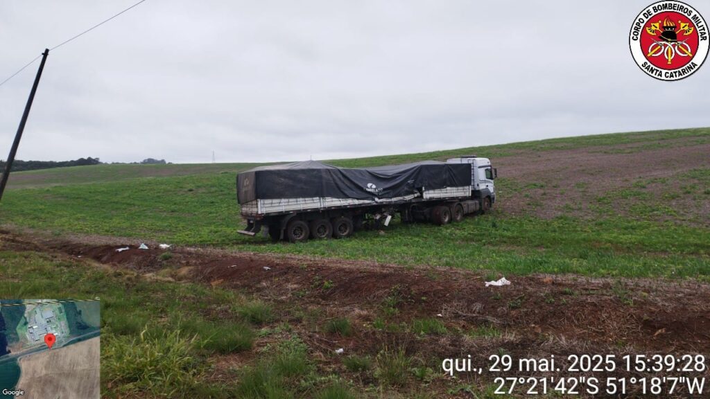 Um homem de 52 anos dirigia o caminhão e foi socorrido com sinais vitais alterados (pressão arterial elevada). Após os primeiros socorros no local, ele foi levado para avaliação médica ao hospital do município.