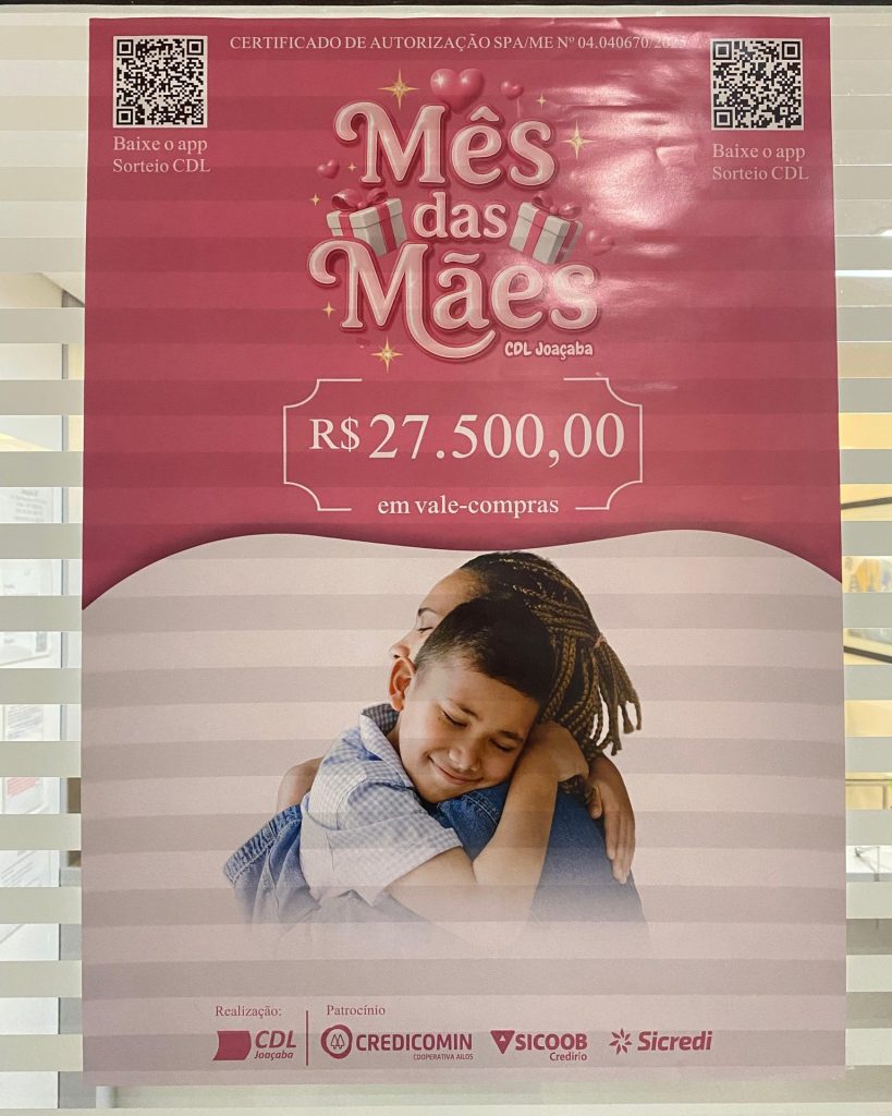 A CDL/Joaçaba lançou nesta segunda-feira, dia 5, a tradicional campanha “Mês das Mães”, que vai distribuir R$ 27.500,00 em vale-compras aos consumidores. A promoção tem como objetivo valorizar o comércio local, impulsionar as vendas e premiar os clientes com prêmios especiais.