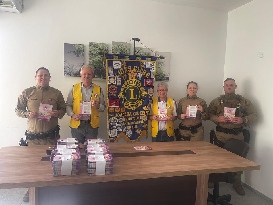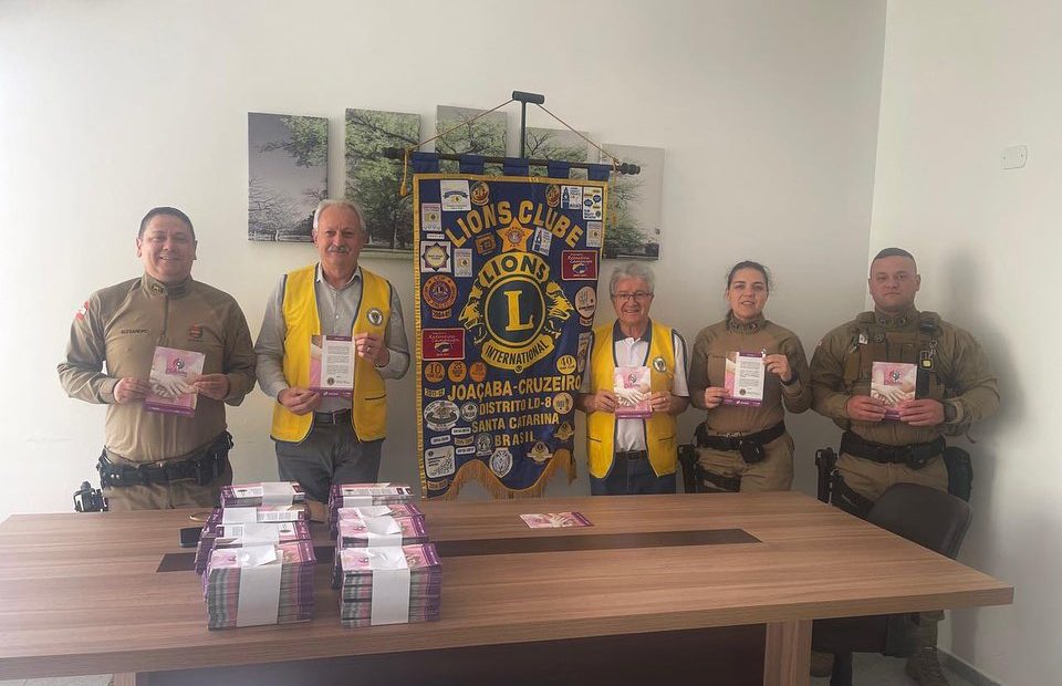 Em mais uma demonstração de seu compromisso com o bem-estar social, o Lions Clube Joaçaba-Cruzeiro realizou ontem a entrega de panfletos educativos do Programa Institucional Rede Catarina de Proteção à Mulher ao 26º Batalhão de Polícia Militar.