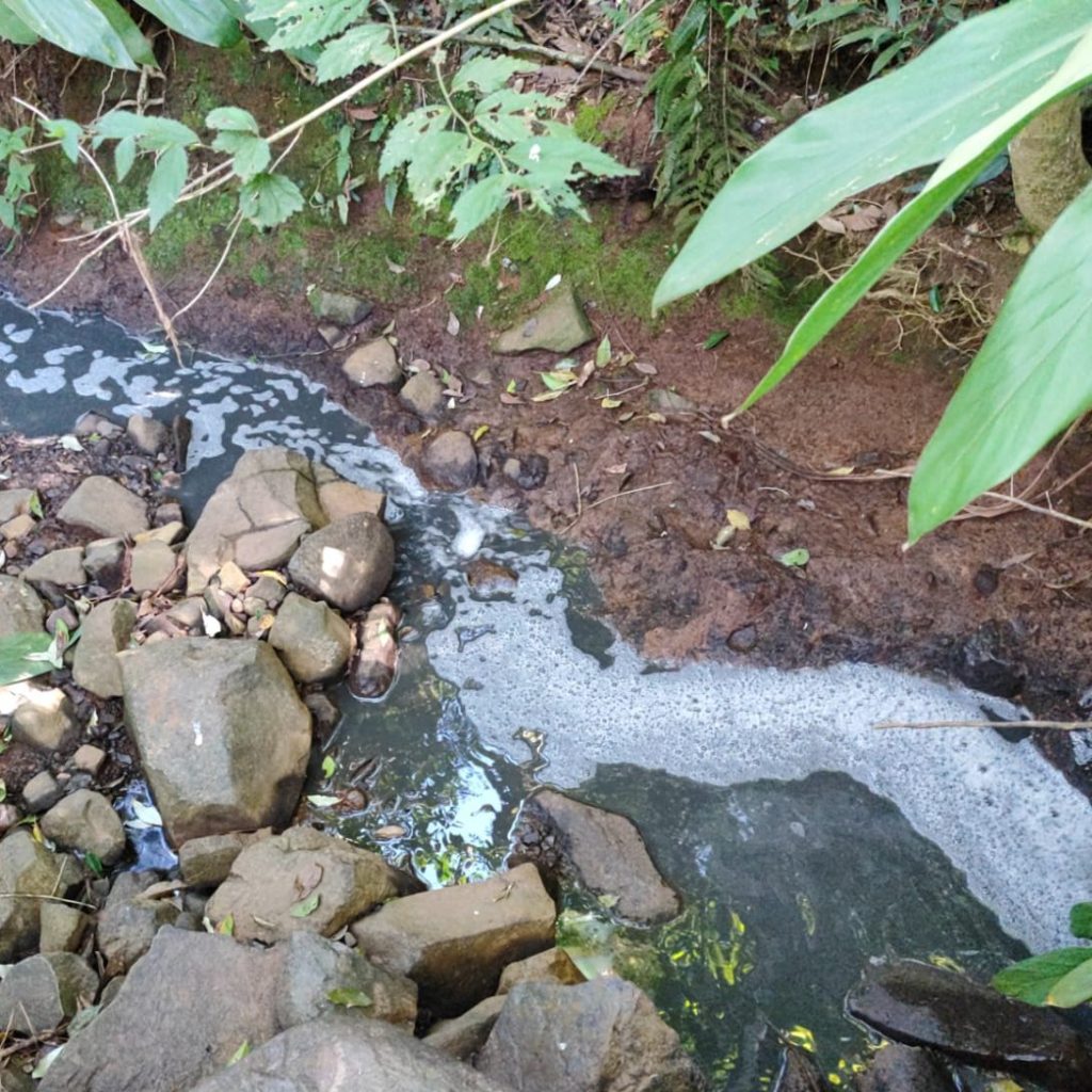 Os policiais ambientais observaram que a água do córrego apresentava coloração turva e acinzentada, além de odor característico de dejetos suínos, confirmando a contaminação. Apesar da poluição evidente, não foi registrada mortalidade de peixes no local.