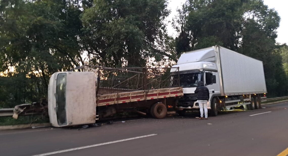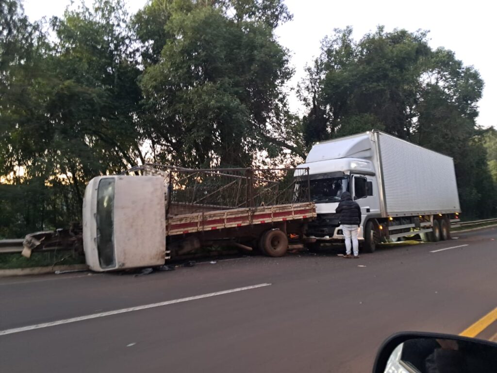 Com o impacto, a cabine de um dos veículos se desprendeu do chassi e tombou na rodovia. Bombeiros Voluntários de Concórdia não chegaram a ser acionados para a ocorrência, sendo em princípio não tendo registro de feridos, apenas danos materiais.