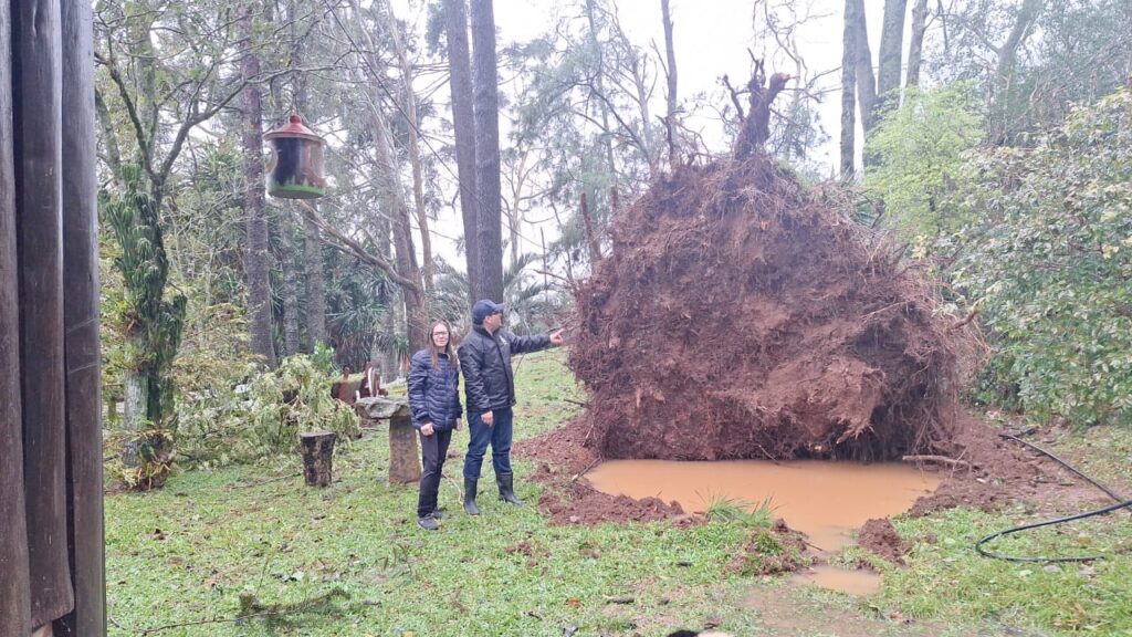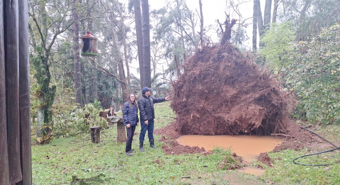 O prefeito Ronaldo da Rosa e o secretário de obras Luciano da Silva percorreram o interior, centro e alguns bairros. Em Sede Sarandi árvores gigantes foram arrancadas, águas destruíram estradas, aviários e casas foram destelhadas assim como a escola Escola Graça Aranha.