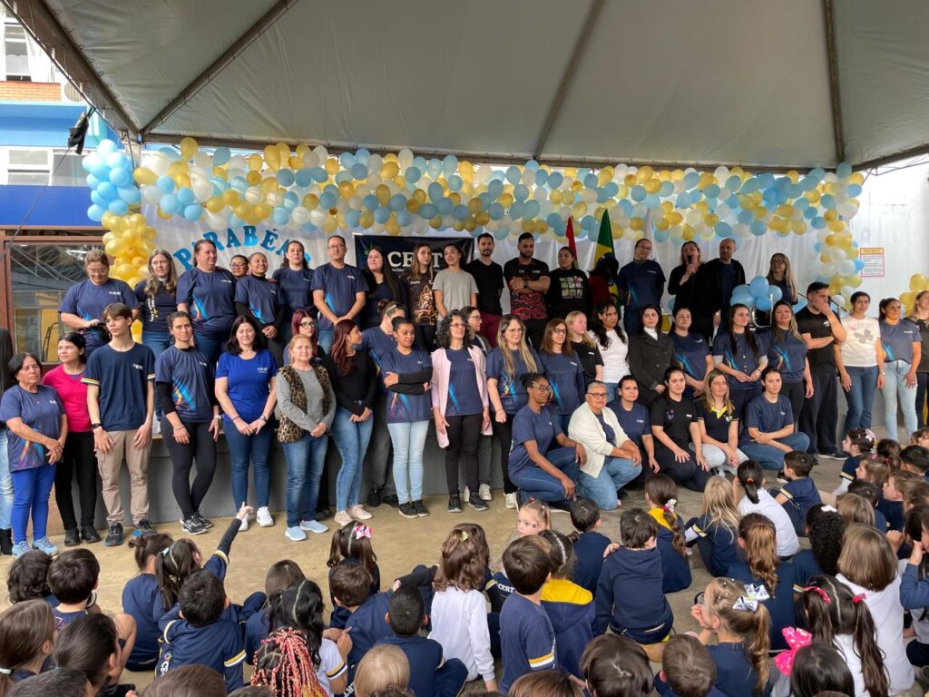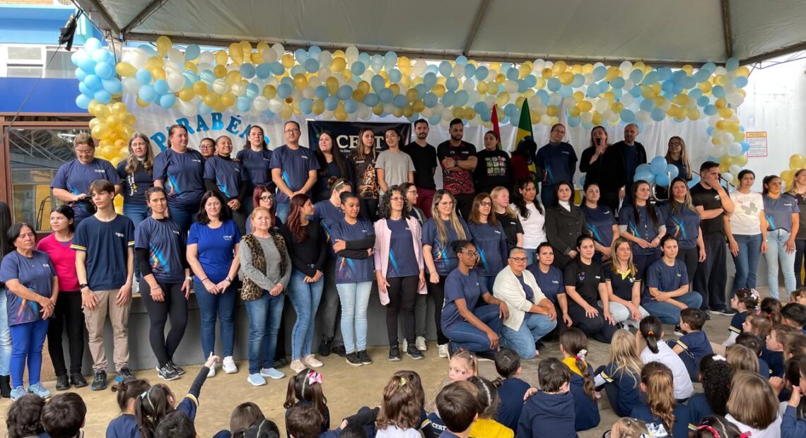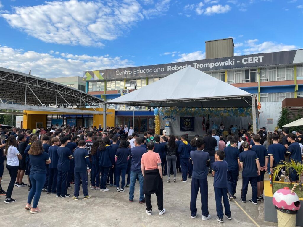 Nesta terça-feira (15), a praça em frente à Catedral foi palco de um momento histórico e emocionante para a Rede Municipal de Ensino de Joaçaba: a comemoração dos 90 anos do Centro Educacional Roberto Trompowsky (CERT). O evento reuniu autoridades locais, profissionais da educação, alunos, ex-alunos e familiares em uma celebração marcada por homenagens, apresentações culturais e reconhecimento à trajetória da escola.