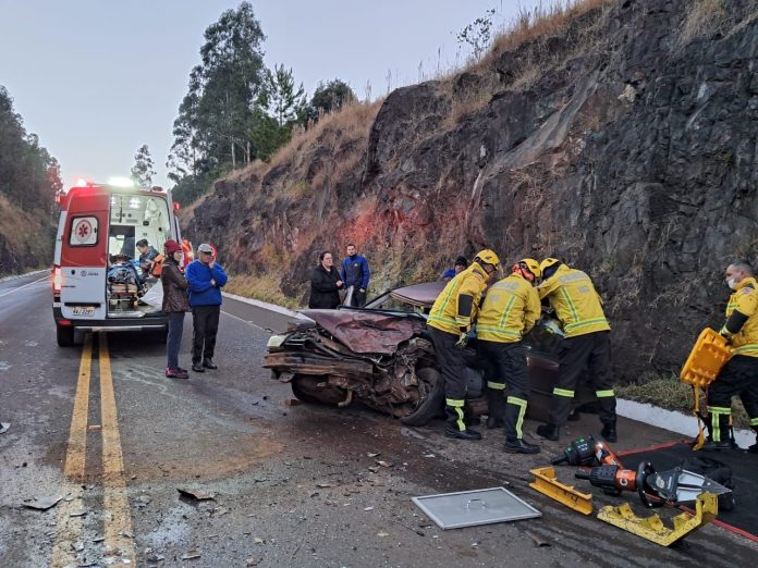 O acidente envolveu dois veículos: um automóvel Gol e uma caminhonete. De acordo com as primeiras informações, há vítimas presas às ferragens. Equipes do Corpo de Bombeiros Militar e do SAMU foram acionadas e estão no local prestando os atendimentos necessários.