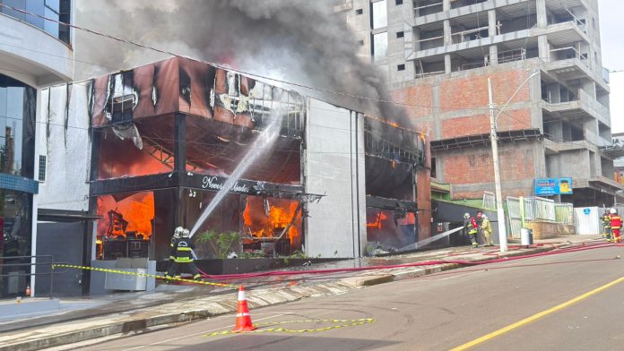 Um incêndio de grandes proporções destruiu completamente as instalações da loja Usadão Móveis, localizada na rua Leonel Mosele, no centro de Concórdia, no início da tarde deste sábado (26).