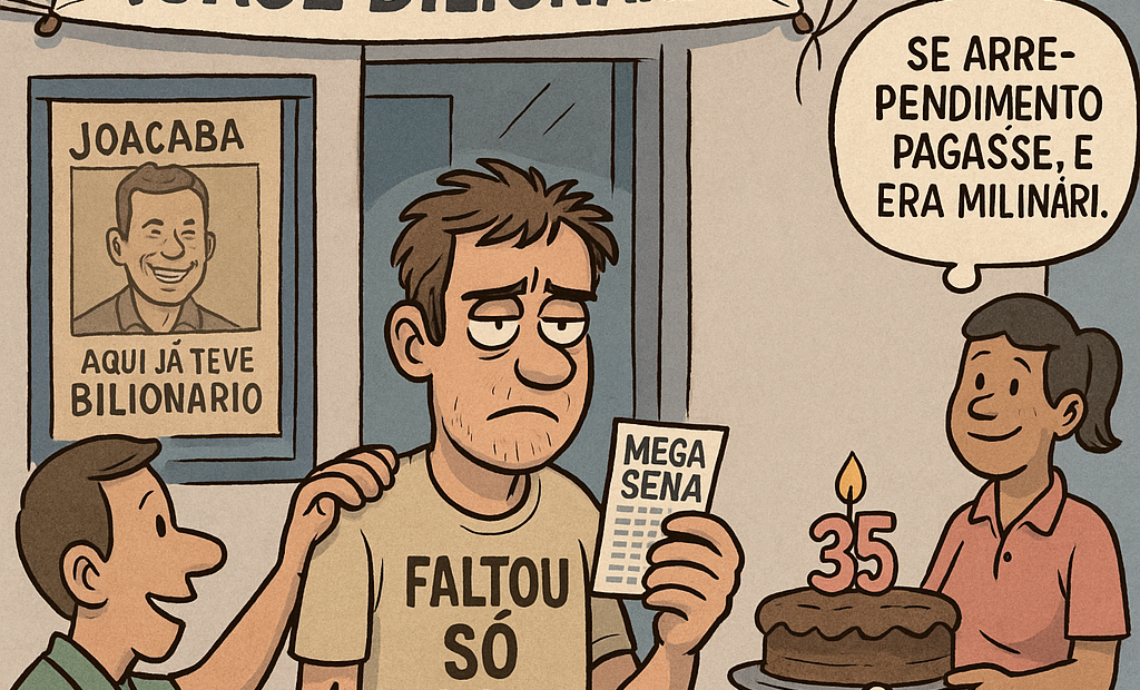 Mas a vida é feita de detalhes, não é? Como aquele pênalti perdido aos 48 do segundo tempo. Faltou um número. Um só. Mas ele não veio. E assim nascem os “quase bilionários”. Uma nova categoria social: rica em esperança, pobre em sorte.