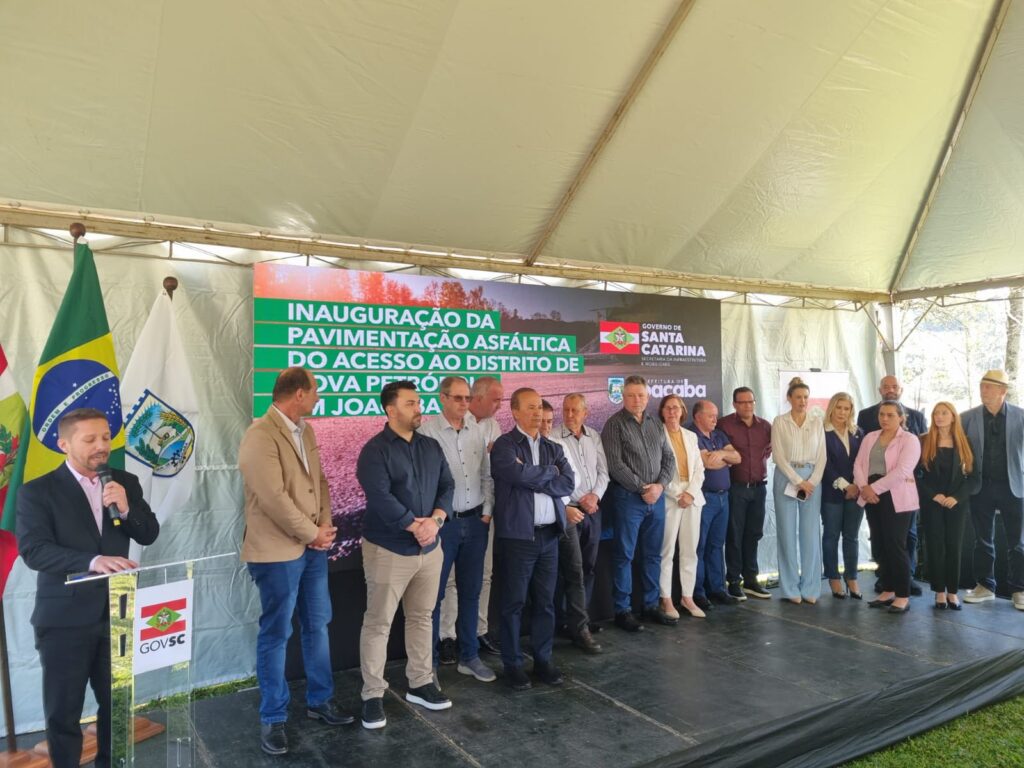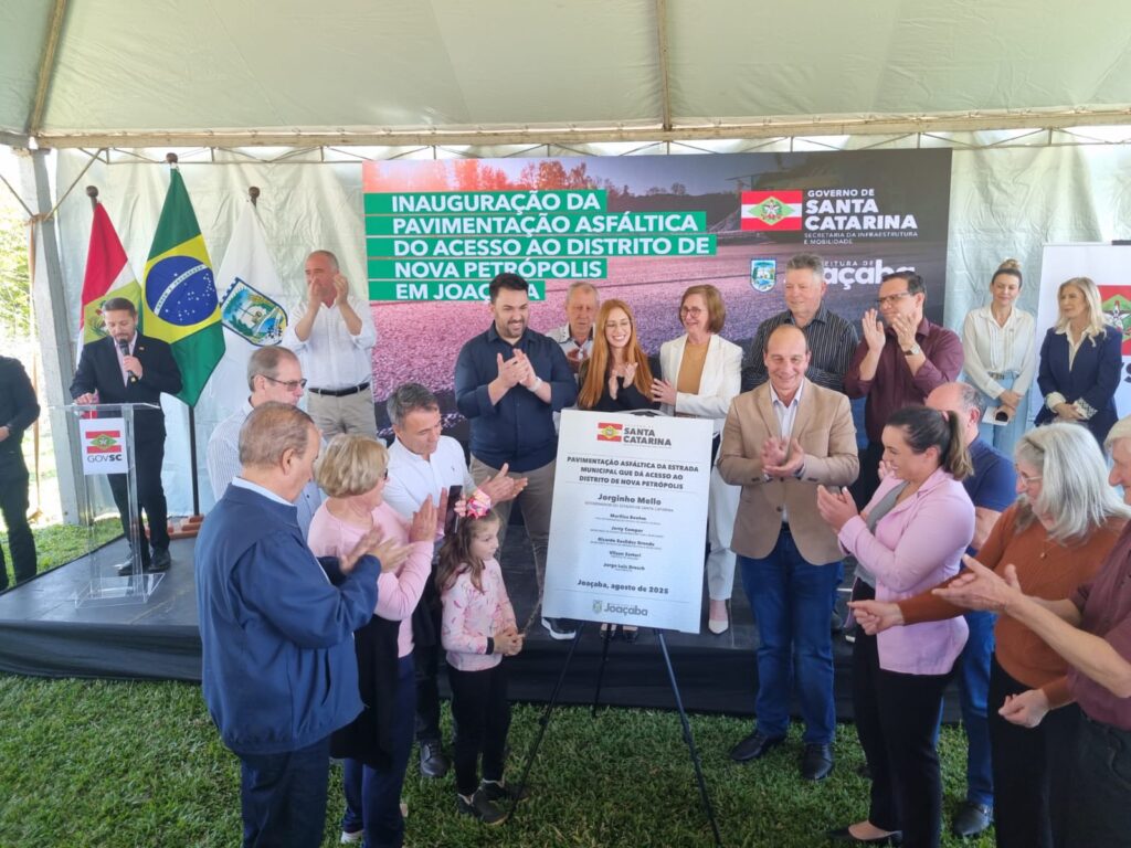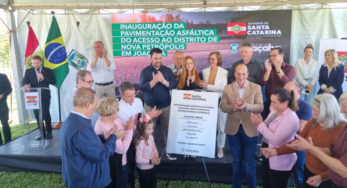 O governador Jorginho Mello inaugurou há pouco a pavimentação da estrada de acesso à comunidade de Nova Petrópolis, em Joaçaba. A obra recebeu investimento de mais de R$ 13 milhões, garantindo melhores condições de trafegabilidade e segurança para moradores e visitantes.A pavimentação era uma demanda antiga da comunidade e, segundo o governo, representa um avanço importante na infraestrutura rural, facilitando o escoamento da produção e integrando ainda mais o interior ao perímetro urbano do município.A cerimônia contou com a presença de autoridades estaduais e municipais, lideranças comunitárias e moradores, que acompanharam de perto a entrega da obra.