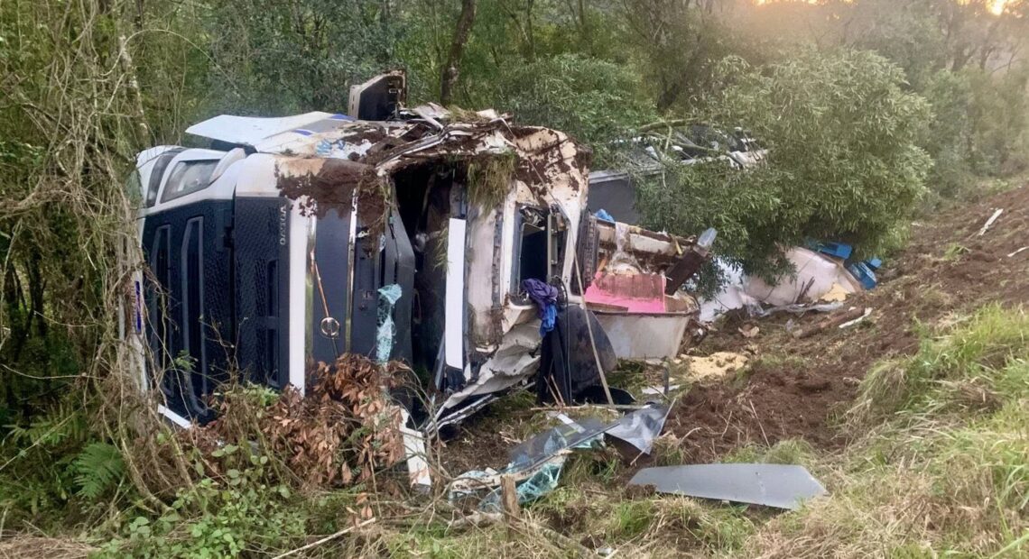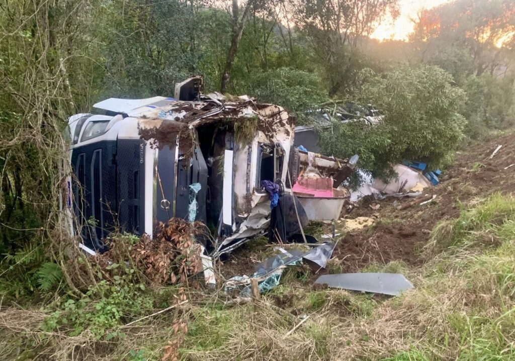 No início da manhã deste sábado (02), O Corpo de Bombeiros Militar de Catanduvas foi acionado após um homem comparecer ao quartel informando sobre um capotamento de carreta ocorrido entre os quilômetros 413 e 414, na BR-282, proximidades do cemitério de Linha Jacutinga, em Catanduvas. A equipe de socorro deslocou-se em prioridade com o trem de socorro até o local, onde foi constatado um veículo Volvo/ FH 460 de cor branca, capotado fora da pista. O condutor encontrava-se fora da cabine, tendo saído por meios próprios.A vítima apresentava suspeita de fratura no braço direito e foi protocolado em maca rígida.Após os procedimentos iniciais, o paciente foi conduzido ao Hospital Universitário Santa Terezinha (HUST), onde permaneceu sob os cuidados da equipe médica.