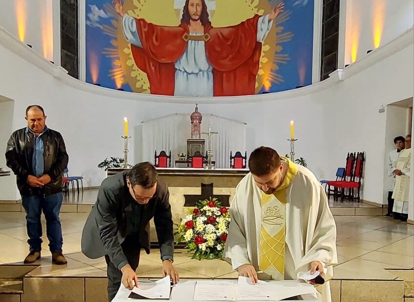 Herval d’Oeste oficializou, nesta segunda-feira (11 de agosto de 2025), o Senhor Bom Jesus como padroeiro do município. A lei foi sancionada pelo prefeito Ronaldo da Rosa durante uma celebração religiosa na Igreja Matriz, conduzida pelo padre Gilvani Capitani. O projeto partiu da bancada do PP na Câmara de Vereadores e foi aprovado por todos os legisladores.