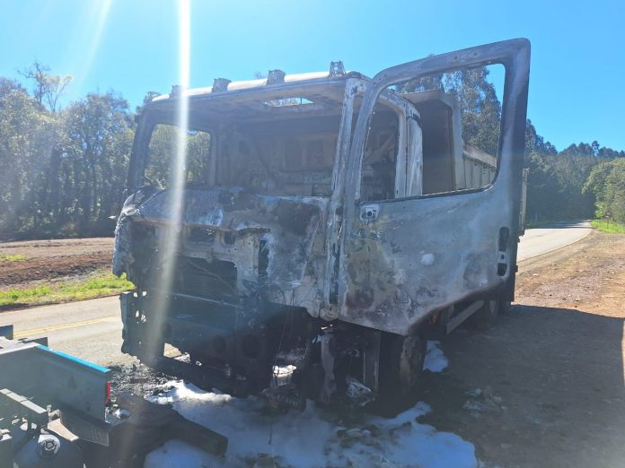 Segundo informações da guarnição, o condutor percebeu cheiro de queimado e chamas na cabine enquanto transitava pela rodovia.