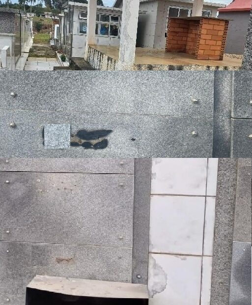 Além dos jazigos afetados, outros pontos do cemitério também apresentavam sinais de violação, sugerindo que os criminosos possam ter agido de forma coordenada e seletiva.