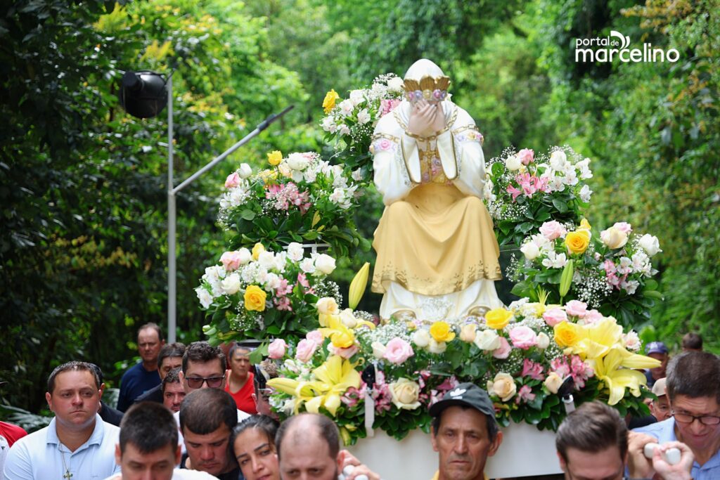 A celebração foi marcada por uma programação intensa, preparada ao longo de todo o mês, mas que teve seu ponto alto no domingo. Desde as primeiras horas da manhã, missas foram celebradas, culminando com a tradicional procissão que conduziu os fiéis da Matriz São João Batista até o Santuário. O cortejo emocionou os participantes e reforçou uma tradição que há nove décadas movimenta a comunidade local.