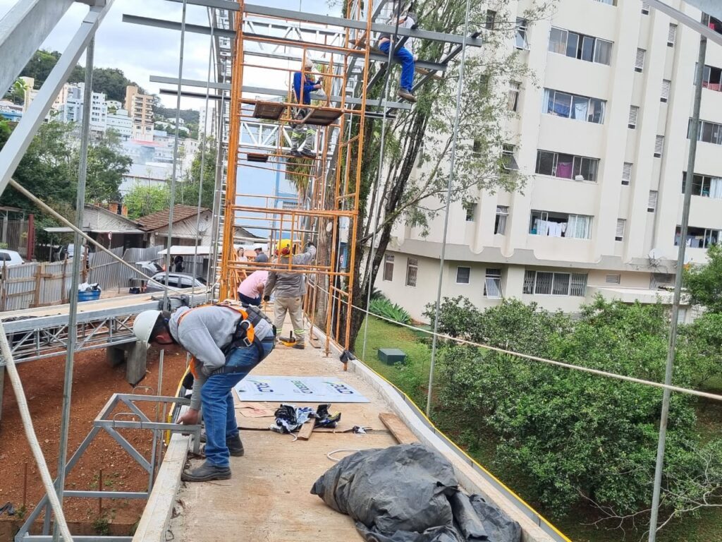 Prevista inicialmente para agosto, a entrega da estrutura agora tem um novo vilão: o guarda-corpo. E não é qualquer um. Trata-se de uma peça de inox com exigência de resistência de 200 quilos por metro — norma que, segundo o responsável pela execução, Jucinei Andrade, obrigou a recalcular tudo e buscar material “fora do cardápio habitual” do setor. Resultado? Mais 30 dias de espera, já que a fabricação precisou ser encomendada fora de Joaçaba.